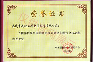 入圍第四屆中國創(chuàng)新創(chuàng)業(yè)大賽企業(yè)組行業(yè)總決賽